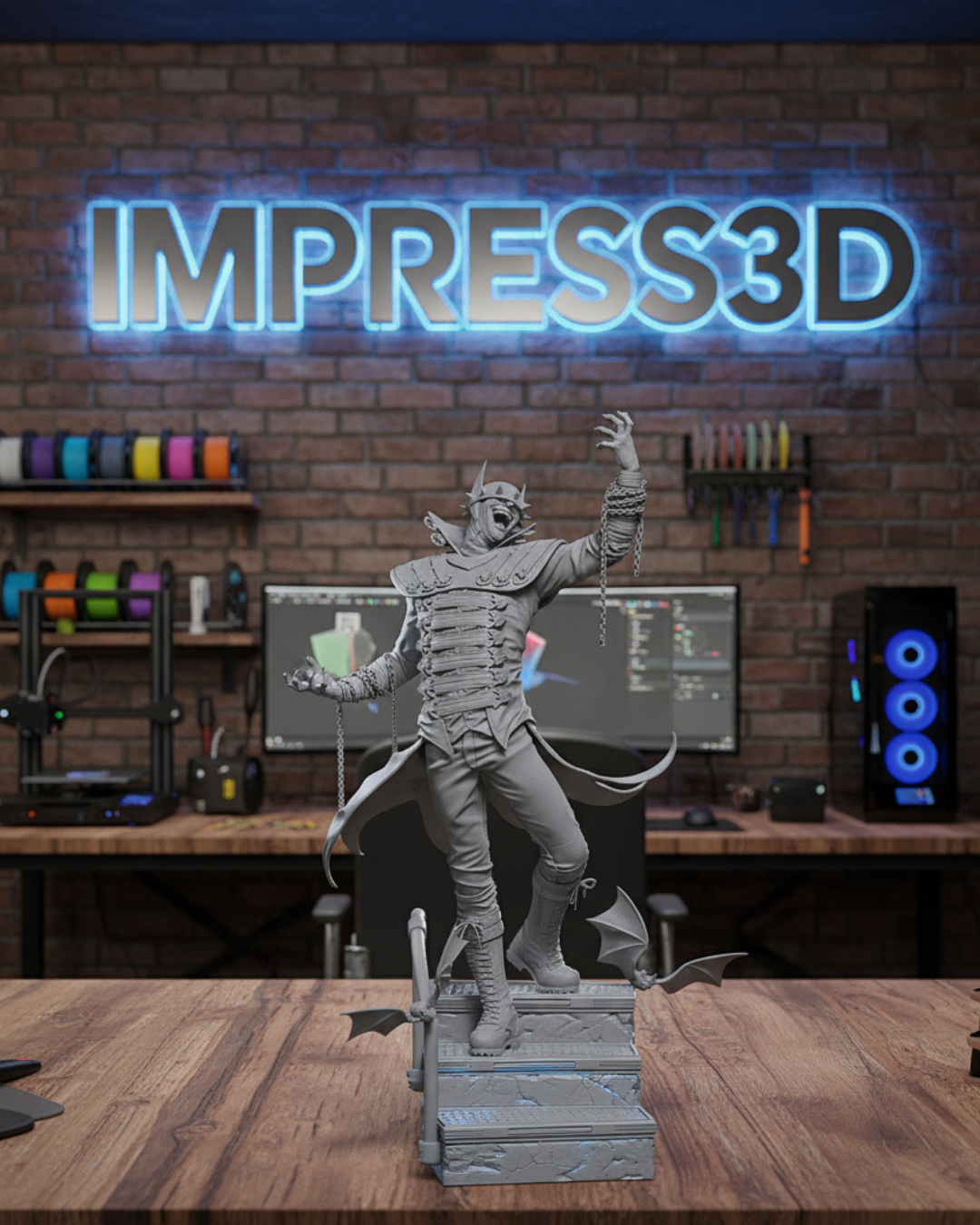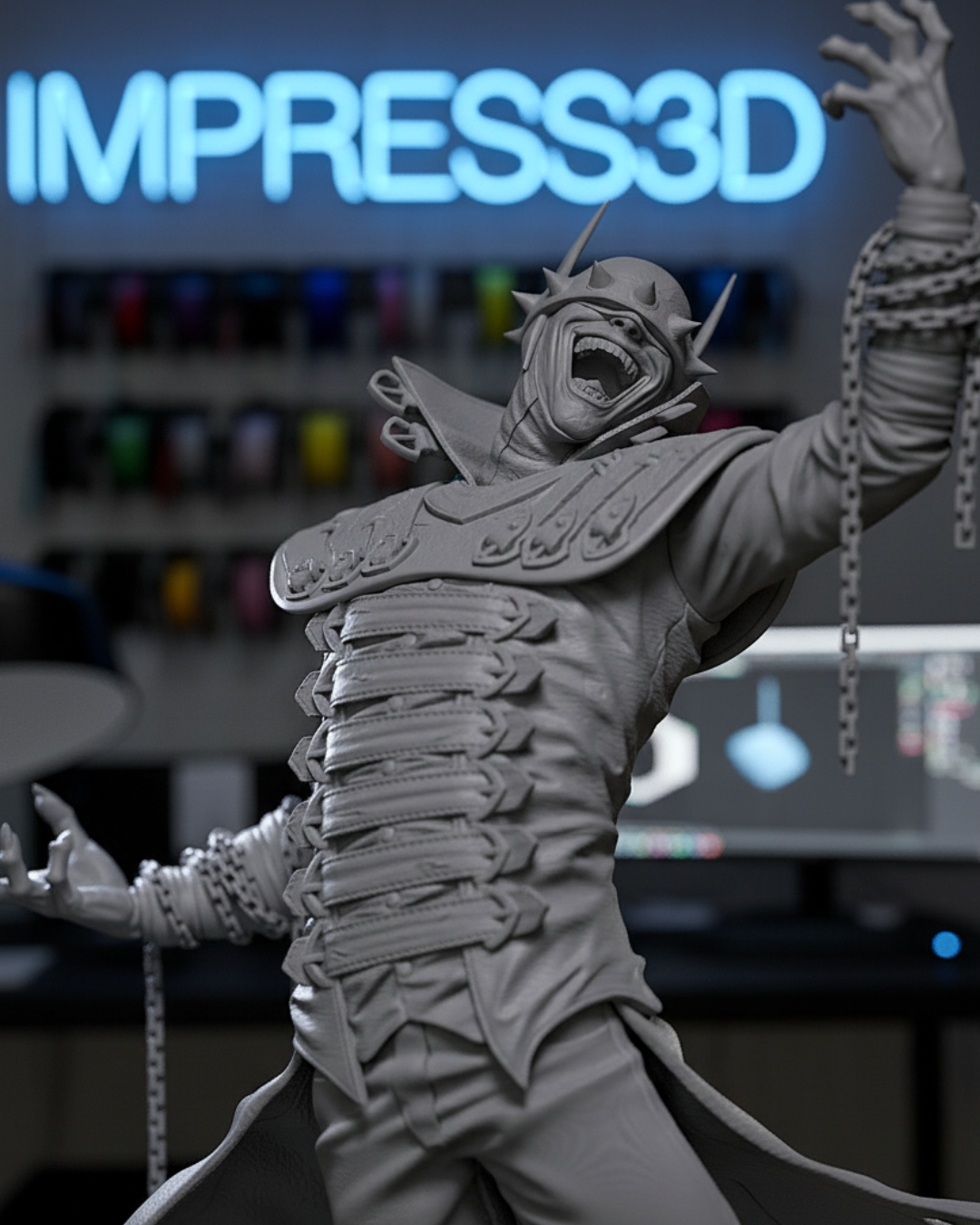 - 🚨 ESCOLHA SUA VERSÃO 🚨: Você pode levar a peça em tom de impressão (ideal para pintores e customizadores) ou escolher a versão pintada e acabada por nossos artistas! (Se você quiser ver outros personagens sombrios? [Clique aqui e explore nossa Galeria de Vilões](https://loja.impress3d.com.br/galeria-viloes)).